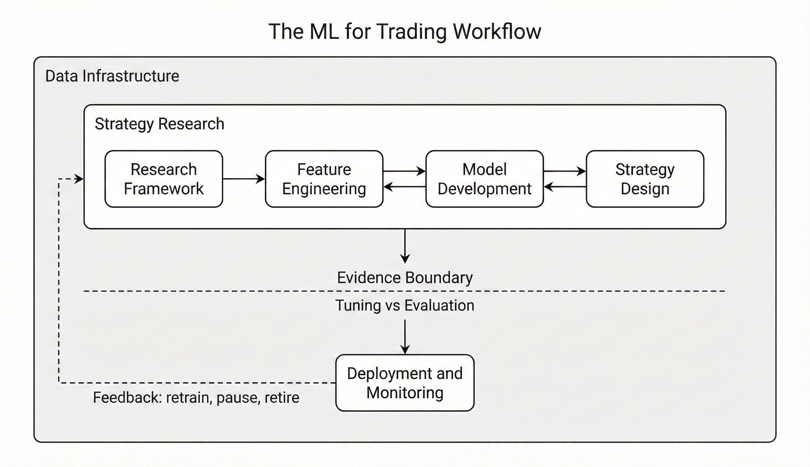 Reader understands the ML4T workflow, has point-in-time-correct data infrastructure, and 9 case studies set up with proper evaluation protocols.