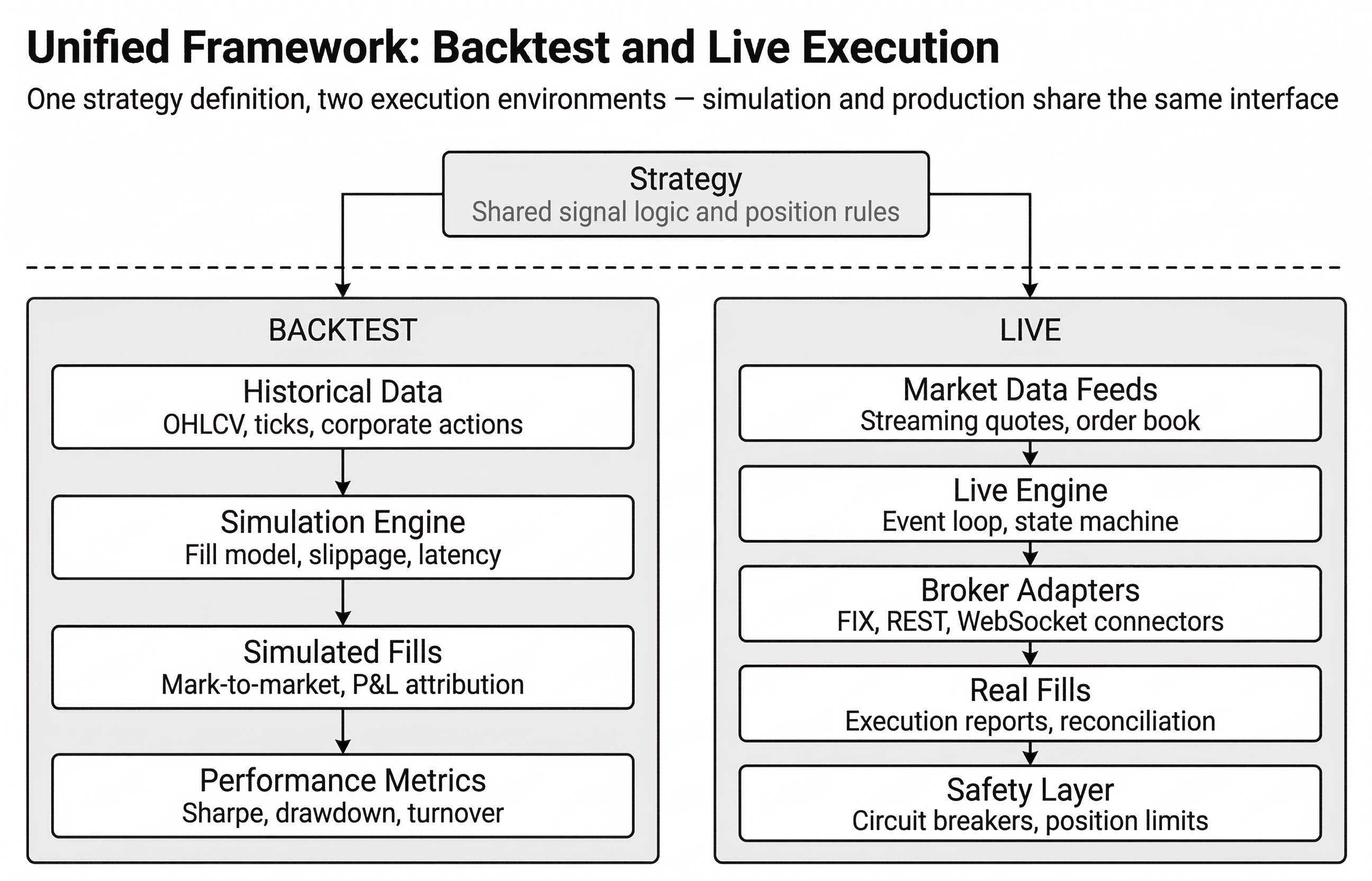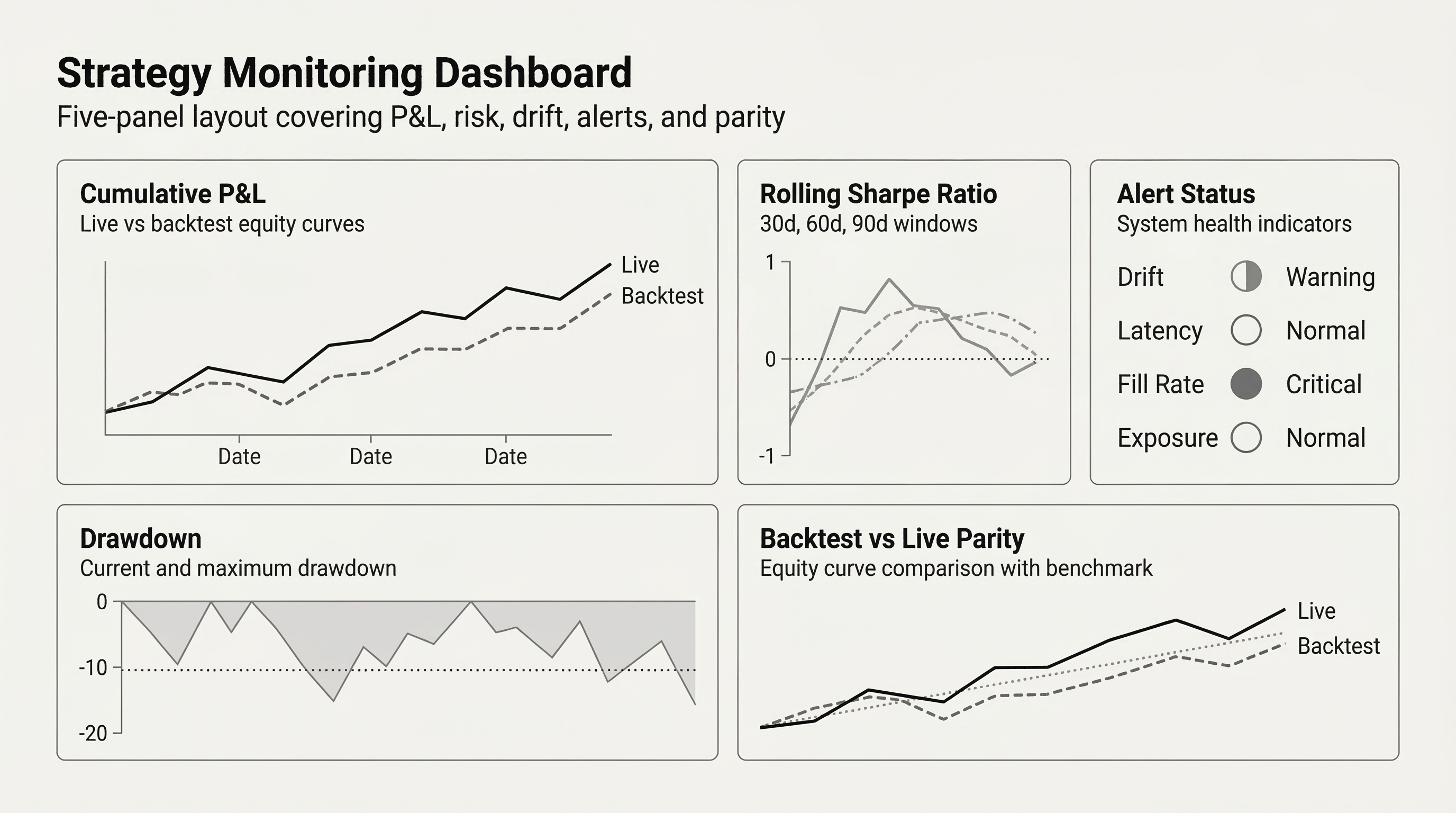27 chapters across 6 parts — from data infrastructure and feature engineering through machine learning models, strategy backtesting, and live deployment.